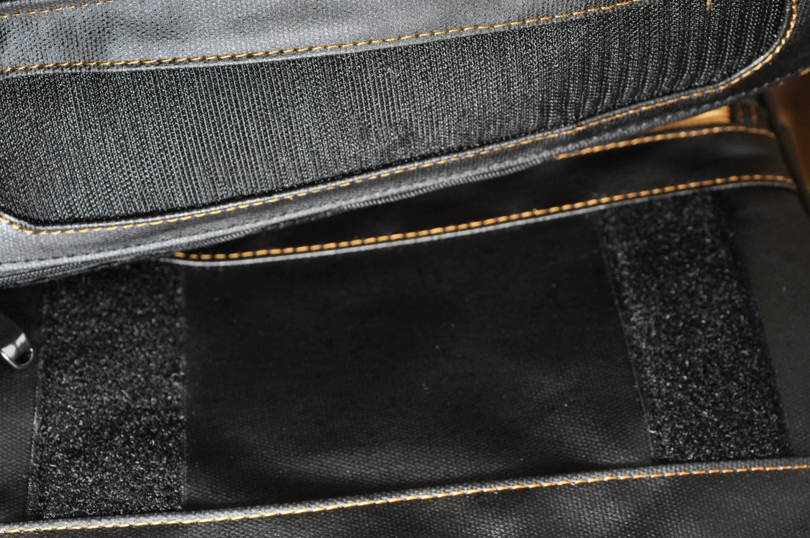 Ouvrons maintenant LE Reporter Photo maintenu par un système de scratch qui permet de le fermer même si on remplit un peu trop. En effet, la partie “douce” est une grande partie de la hauteur et la partie “accrochante” sur toute la largeur, de quoi éviter de devoir poser “exactement” le rabat quand on ferme le sac. Bien vu !
